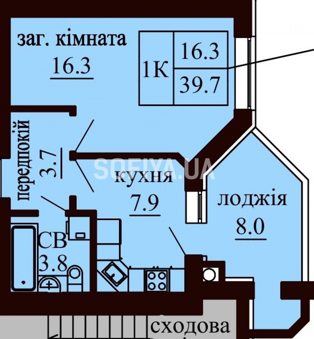 ОДНОКІМНАТНА КВАРТИРА 39.70 М/КВ