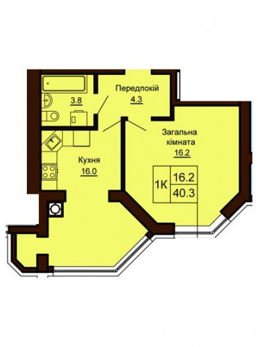 ОДНОКІМНАТНА КВАРТИРА 40.30 М/КВ