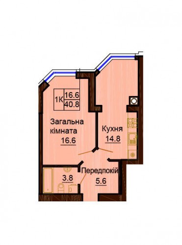 ОДНОКІМНАТНА КВАРТИРА 40.80 М/КВ