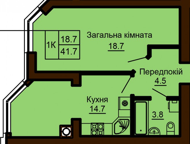 ОДНОКІМНАТНА КВАРТИРА 41.70 М/КВ