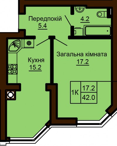 ОДНОКІМНАТНА КВАРТИРА 42.00 М/КВ