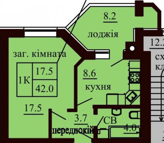 ОДНОКІМНАТНА КВАРТИРА 42.00 М/КВ