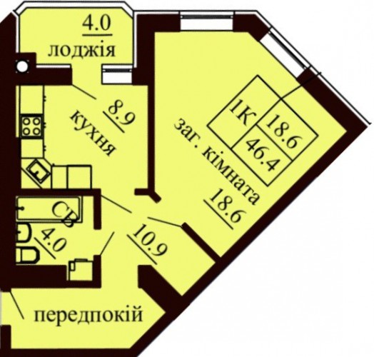 ОДНОКІМНАТНА КВАРТИРА 46.40 М/КВ