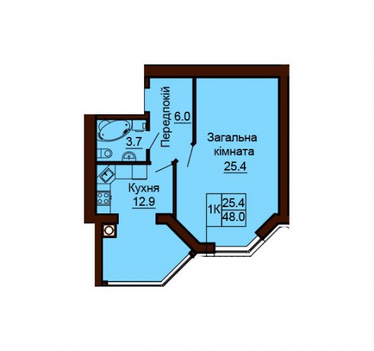 ОДНОКІМНАТНА КВАРТИРА 48.00 М/КВ
