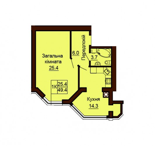 ОДНОКІМНАТНА КВАРТИРА 49.40 М/КВ