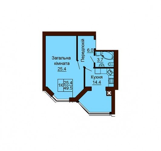 ОДНОКІМНАТНА КВАРТИРА 49.50 М/КВ