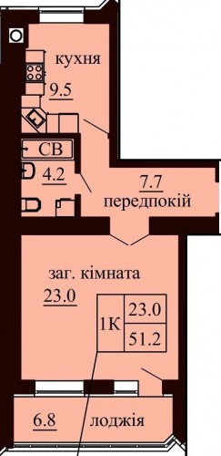 ОДНОКІМНАТНА КВАРТИРА 51.20 М/КВ