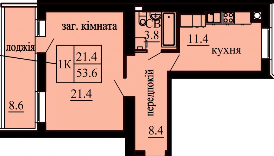 ОДНОКІМНАТНА КВАРТИРА 53.60 М/КВ
