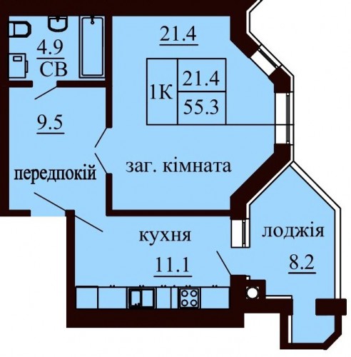 ОДНОКІМНАТНА КВАРТИРА 55.30 М/КВ