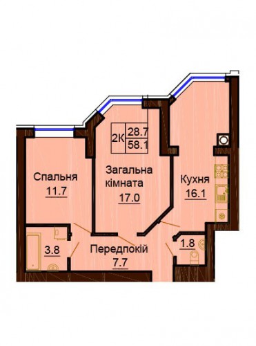 ОДНОКІМНАТНА КВАРТИРА 58.10 М/КВ