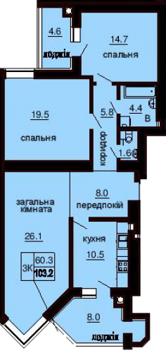 3-Х КІМНАТНА КВАРТИРА 103.20 М/КВ