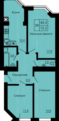 3-Х КІМНАТНА КВАРТИРА 72.20 М/КВ