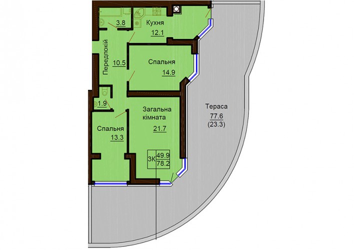 3-Х КІМНАТНА КВАРТИРА 78.20 М/КВ