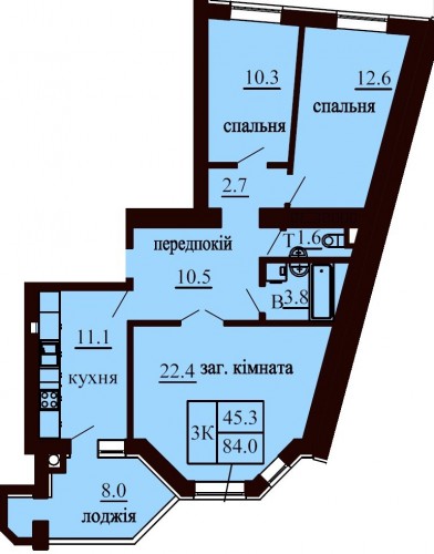 3-Х КІМНАТНА КВАРТИРА 84.00 М/КВ