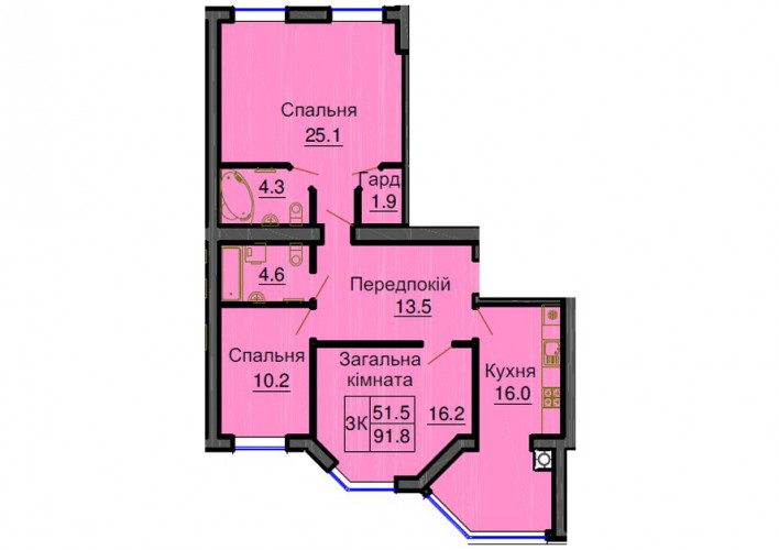 3-Х КІМНАТНА КВАРТИРА 91.80 М/КВ