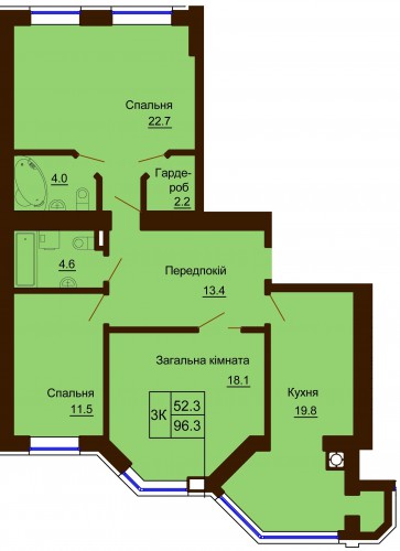 3-Х КІМНАТНА КВАРТИРА 96.30 М/КВ
