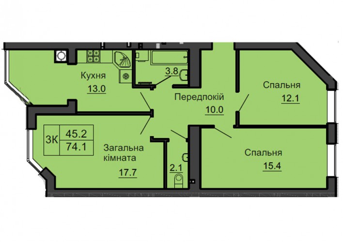3-Х КІМНАТНА КВАРТИРА 74.10 М/КВ