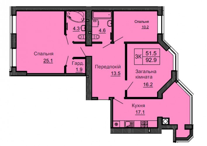 3-Х КІМНАТНА КВАРТИРА 92.90 М/КВ
