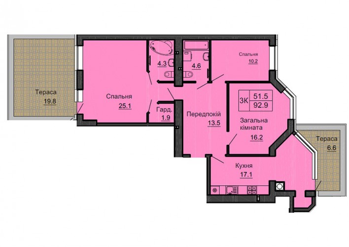 3-Х КІМНАТНА КВАРТИРА 92.90 М/КВ