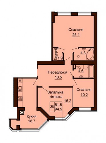 3-Х КІМНАТНА КВАРТИРА 94.50 М/КВ